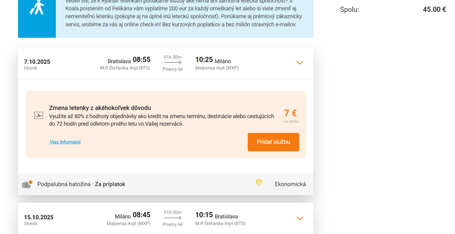 Bratislava – Miláno (od 45 €)