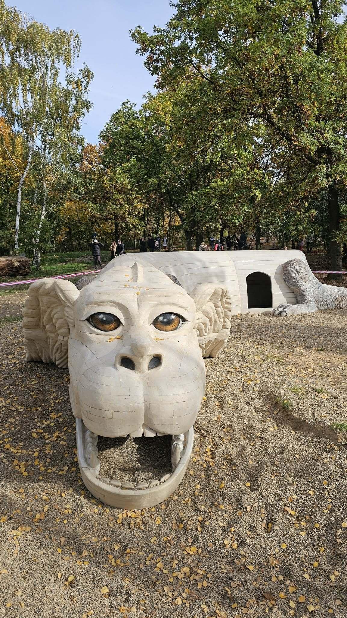 Je drevený, jeho roztomilý výraz je dielom rezbárov, meria 17 metrov na dĺžku a stal sa nielen novou atrakciou pre deti, ale aj magnetom pre turistov. Vo svete podľa všetkého nemá obdobu, píše portál iDnes.
