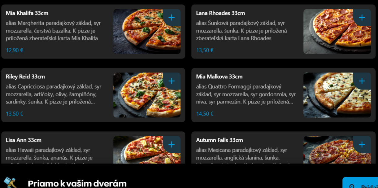 33-centimetrová margherita (alebo Mia Khalifa, ak chceš) ťa bude stáť 12,90 eura, najdrahšia salámová (ej kej ej Adriana Chechik) vyjde až na 14,90 eura. Či sa o vyššiu cenu postarali práve zberateľské kartičky nie je jasné.