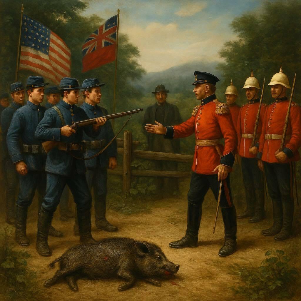 V roku 1859 sa medzi USA a Britániou vyhrotil spor o ostrov San Juan pri Kanade. Vyvrcholilo to, keď Američan zastrelil prasa patriace Britovi, pretože mu žralo zemiaky. Napätie rástlo, na ostrov poslali vojakov, no konflikt našťastie ustál. Nikto iný nezomrel. História si to zapamätala ako Prasaciu vojnu – jednu z najmenej krvavých „vojen“ vôbec.