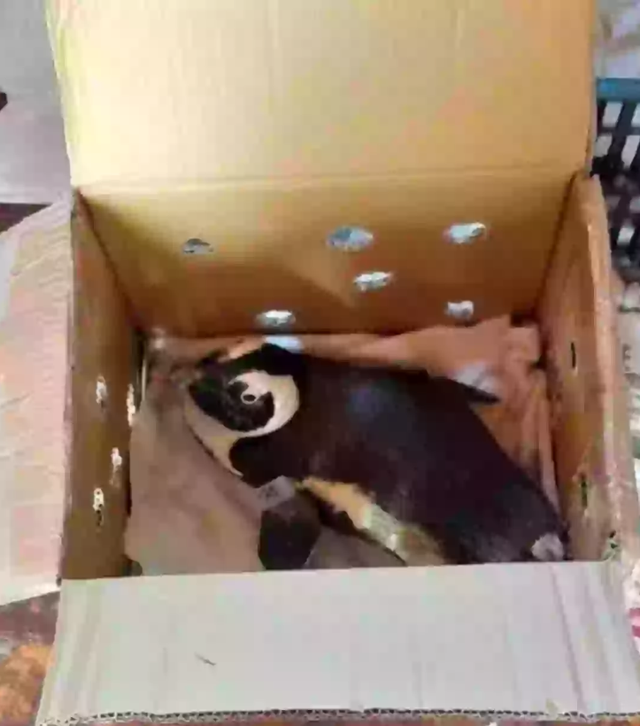 Tučniak bol po ukončení prieskumu naložený do kartónovej škatule a položený výskumníkovi na kolená. Namiesto riadnej prepravky, ktorá by spĺňala predpisy civilného letectva, bol operený pasažier v provizórnom balení – čo sa ukázalo ako veľká chyba.