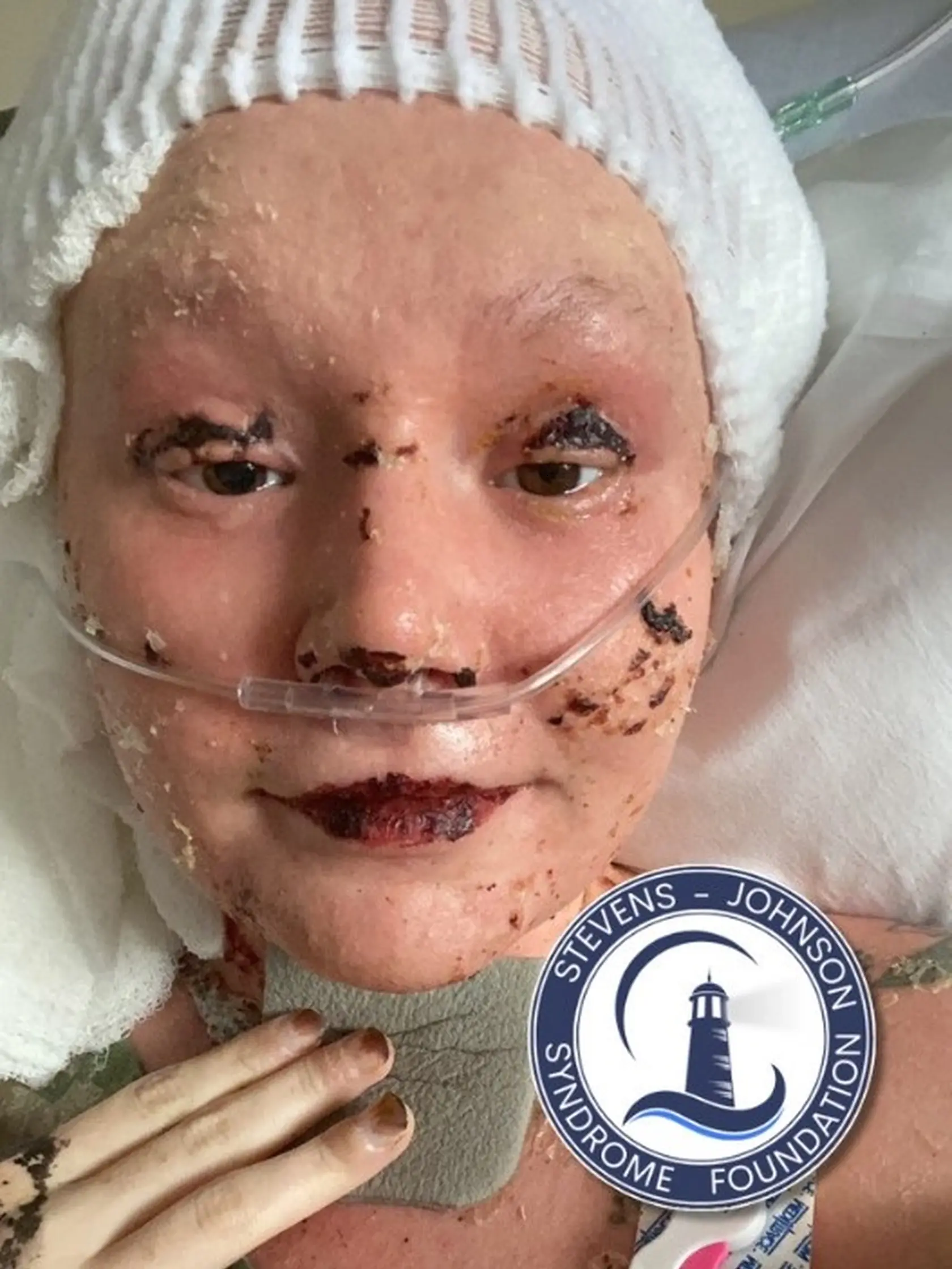 Len pár hodín po prvej návšteve nemocnice jej tvár pokryli pľuzgiere a oči sa jej zavreli od opuchu. Po návrate na pohotovosť lekári zistili, že nejde o bežnú infekciu, ale o Stevens-Johnsonov syndróm, vzácnu a nebezpečnú reakciu imunitného systému na liek.