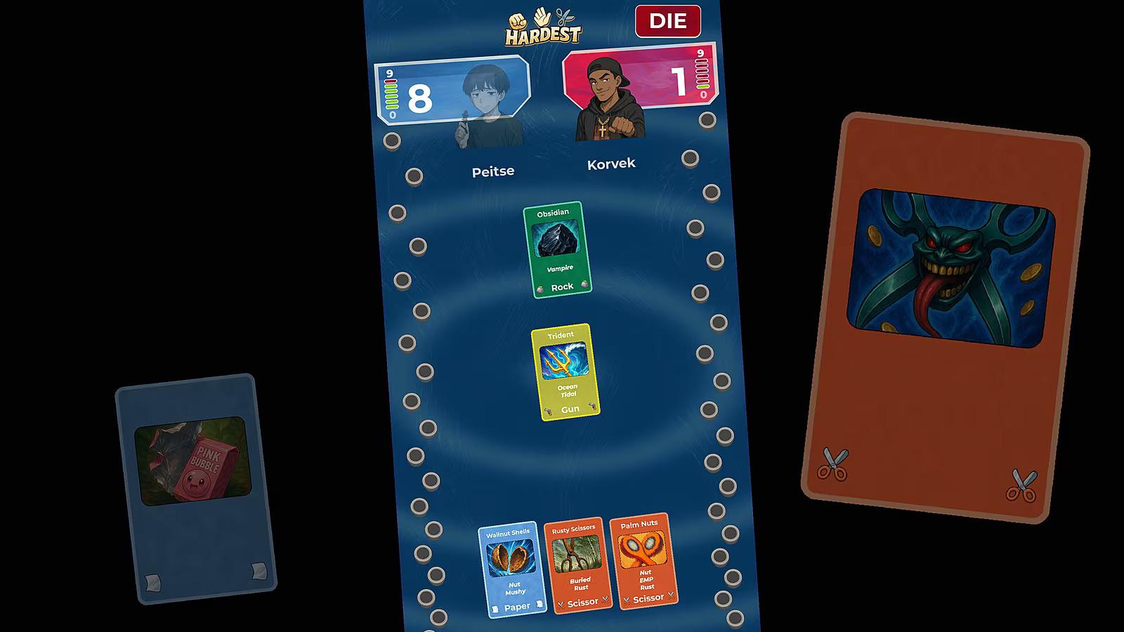 Jeho hra Hardest je roguelite titul, ktorý mieša dohromady pravidlá hry kameň-nožnice-papier s využitím kartových prvkov. Hra má na Steame aktuálne iba 33 užívateľských recenzií a len polovica z nich je pozitívnych. Ide úplne jasne o experimentálny študentský projekt.